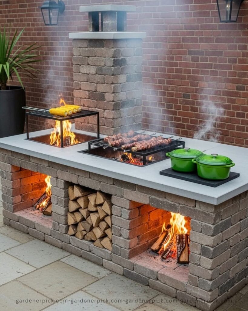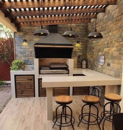 • Parrilla rústica compacta para patios pequeños y funcionales: La parrilla rústica compacta es una excelente opción para patios pequeños. Su acogedor diseño permite aprovechar el espacio sin sacrificar su funcionalidad. Este puede incluir una zona de cocción, almacenamiento básico y área para carbón. Generalmente se construye con materiales como ladrillo o concreto, manteniendo un estilo sencillo. Es ideal para quienes buscan una solución económica, funcional y estética para disfrutar de parrilladas en espacios reducidos dentro del hogar.