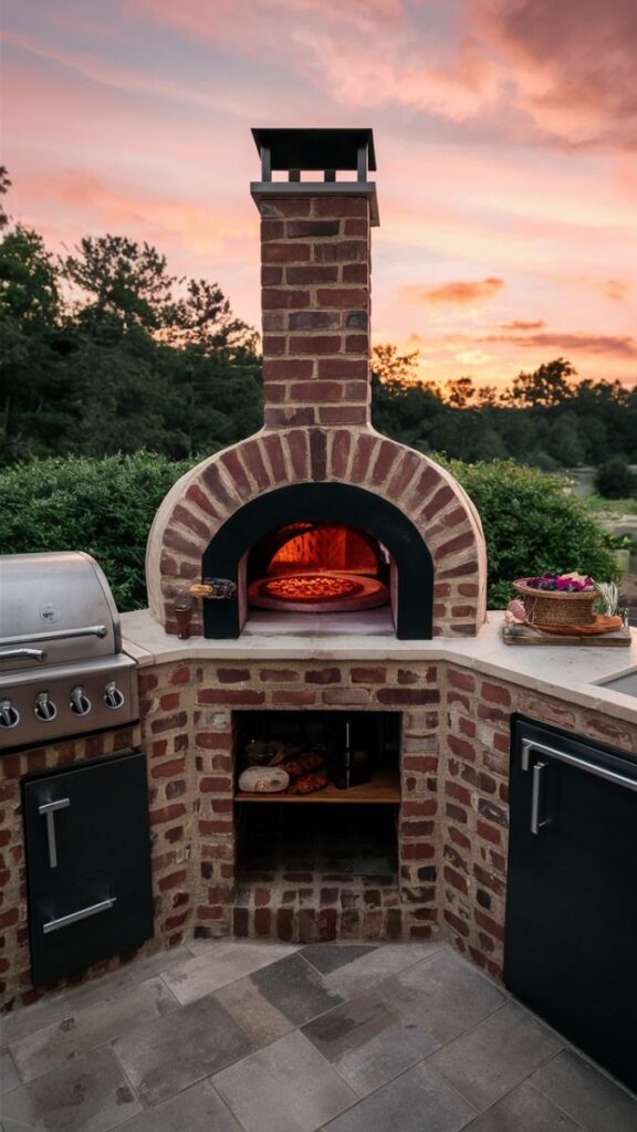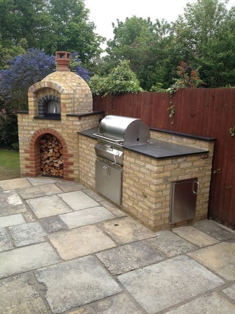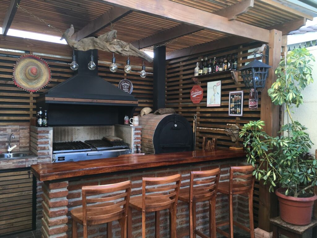 • Parrilla con horno de leña incorporado para mayor versatilidad: La parrilla con horno de leña incorporado es una excelente alternativa funcional y muy versátil. Nos permite cocinar carnes a la brasa y preparar pizzas, panes o asados tradicionales con un excelente sabor. Su estructura se construye con ladrillo refractario, lo que ayuda a conservar mejor el calor. Gracias a este diseño, logramos aportar un estilo rústico y auténtico al patio, lo que ofrece un espacio completo para disfrutar diversas preparaciones culinarias.