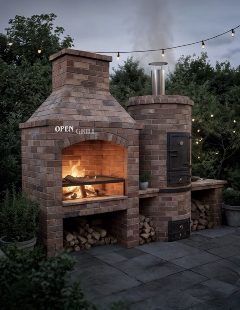 • Parrilla rústica con chimenea alta para mejor ventilación: La parrilla rústica con chimenea alta es la mejor opción para mejorar la ventilación en el área de cocción. Su estructura permite dirigir el humo hacia arriba, evitando así molestias en espacios cercanos. Este diseño logra combinar funcionalidad y estética, ya que su forma estilizada aporta carácter al patio. Generalmente se construye con ladrillo o piedra, manteniendo un estilo tradicional que se nos permite adaptarnos a distintos tipos de decoración exterior.